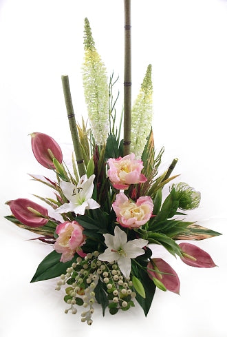 This stunning modern artificial flower arrangement is made up of some of the finest artificial flowers available. Manufactured in Thailand and known for expertise in manufacting artificial flowers and plants. The flowers are as lifelike as they come and will make a great decoration for any home or office.